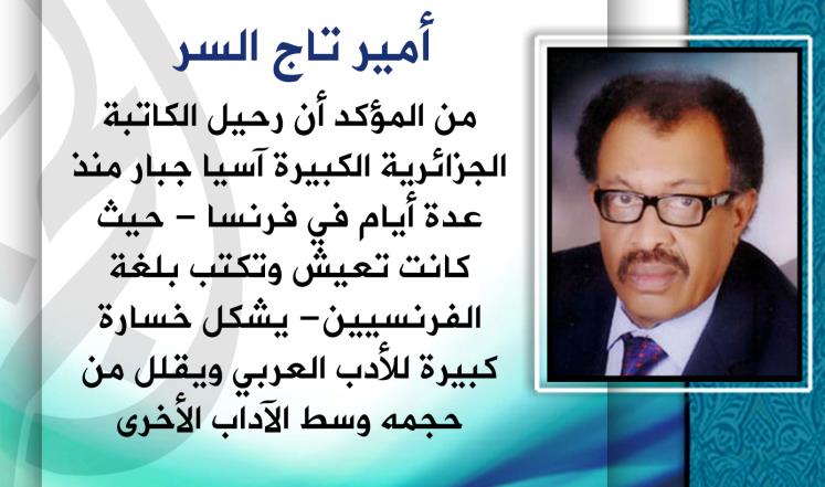 يقول امير تاج السر في مقاله الاخير حول آسيا جبار