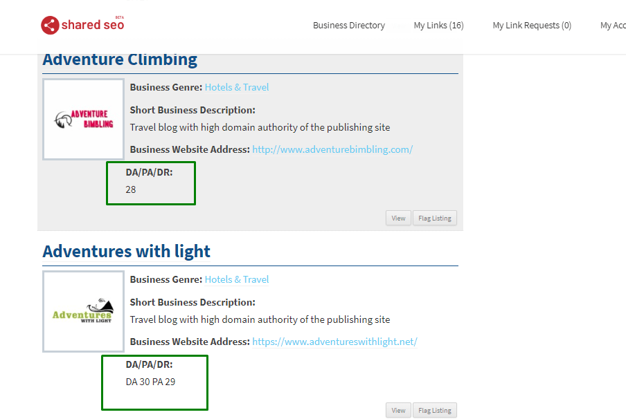 ملاحظة هامة: ستجد معلومات الـ Domain Authority المعروف اختصارًا بـDA وPage Authority المعروف اختصارًا بـ PA وDomain Rating المعروف اختصارًا بـDR أسفل كل موقع؛ لكن يمكنك التحقق بنفسك من جودة المواقع بصورة مستقلة باستخدام هذه الأدوات: