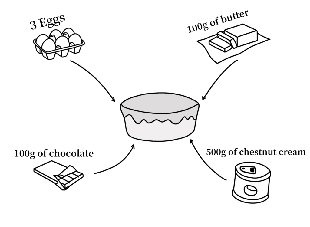 إن أردنا طهي كعكة شوكولاته مُحلاة بكْرِيمة الكستناء، سننظر أولًا في المكونات المطلوبة. وتلك المكونات تُمثل البيانات.