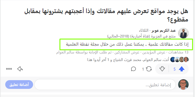 فرصة لكتّاب وكاتبات المقالات في المجال العلميّ: حساب الأستاذ عبد الكريم عوير على كورا – حسابه على تويتر، موقع مجلة نقطة العلمية.