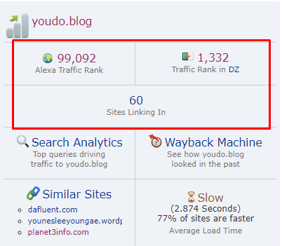 في أنباء أخرى، كسرت مدونتي بحمد الله، حاجز المئة ألف على مقياس أليكسا لترتيب المواقع عالميًا، وهو مقياس كلما قلّ، كان موقعك أقوى على الإنترنت من ناحية الترتيب، كما تلاحظون في الصورة؛ وهذا أمر يُسعدني لأنه يعني أيضًا قيمةً أكبر للرعاة لأنهم سيحصلون على رابط خلفيّ (باكلينك) قويّ يساعدهم على التصدّر في نتائج محركات البحث.