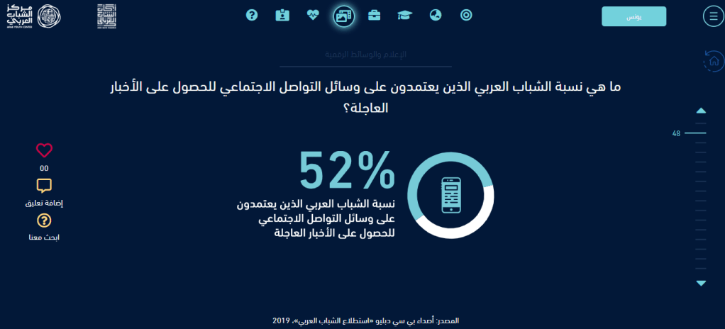 جديد الويب العربي: إطلاق منصة حقائق الشباب العربي التفاعلية [صحيفة البيان] رابط مباشر لـمنصة حقائق الشباب العربي.