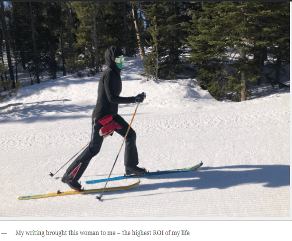 وفي هذا المقال الإنجليزي المعنون بـ الكتابة والنشر [Feel The Byrn]، يحكي لنا آندي كابلان عن المنافع التي جناها من الكتابة والنشر منذ زمن طويل وهو مقال رائع فعلًا، ويضم أيضًا لماذا هو مستمر في التدوين. ومن بين المنافع حصوله على زوجة كما قال، انظر الصورة والوصف: