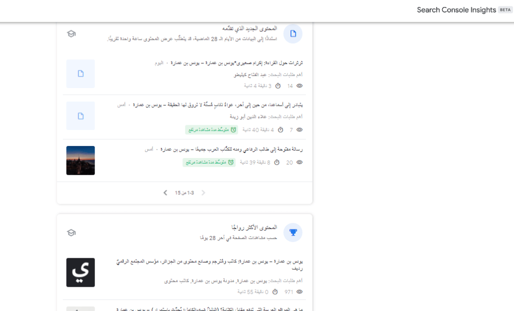 خدمة Search Console Insights في مدونتي