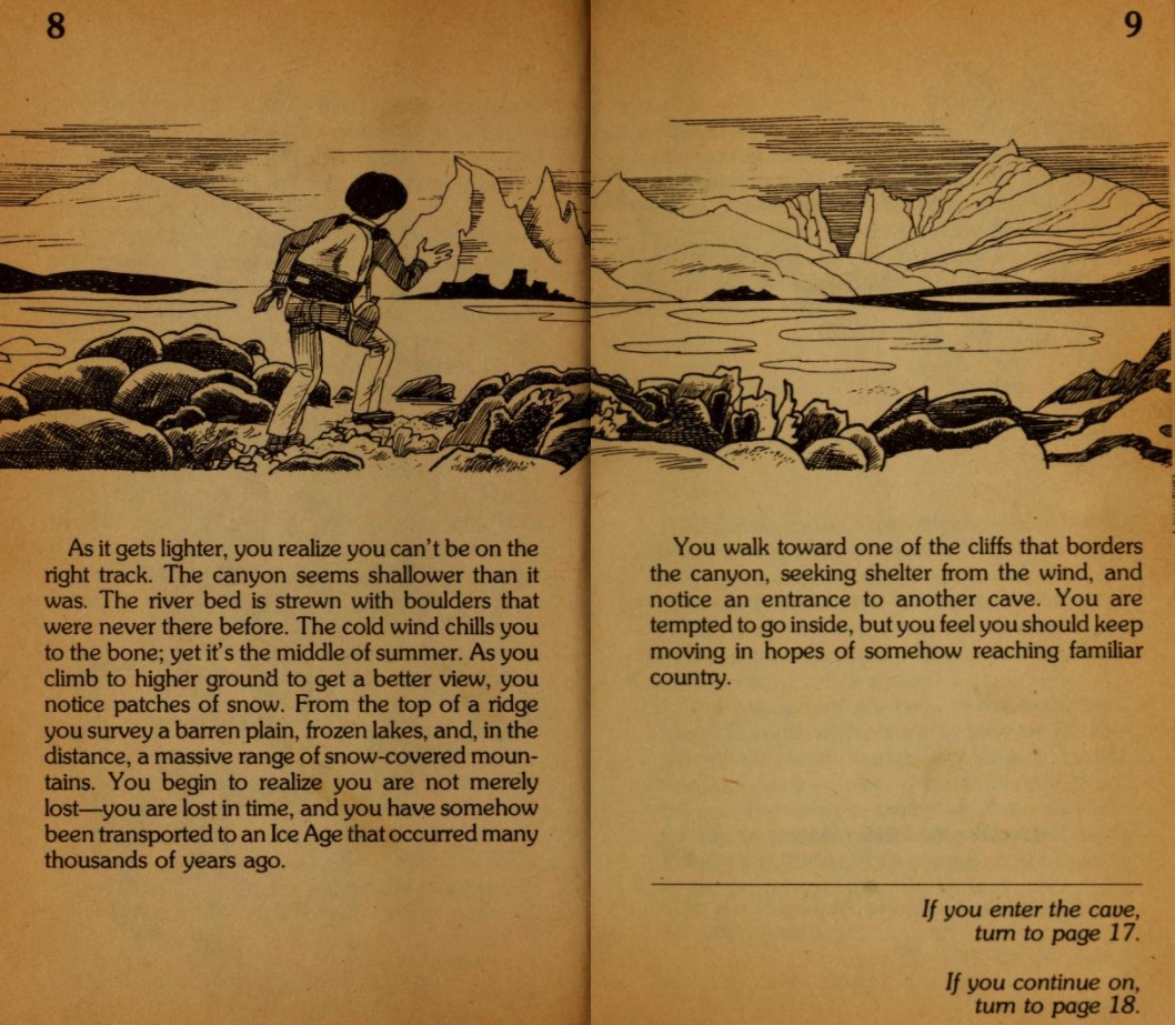 كانت رواية “كهف الزمن” أول رواية من سلسلة “اختر مغامرتك بنفسك” (Choose Your Own Adventure). وقد نُشرت العام 1979 وتبدأ كما يلي: