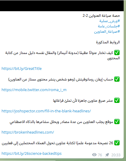 على ذكر العناوين: قدّمنا في رديف ورشة من جزئين عن صياغة العناوين، هذه لمحة عنهما. للوصول المباشر للحصتين. فكّر في الاشتراك في رديف. ستصل للحصتين وكلّ المكتبة الحصرية التي لدينا هناك. فضلًا عن حصتين خاصتين بك كل شهر نرافقك فيها فيما تود تحقيقه، و3 حصص عامة نافعة للمشتركين كل أسبوع. اشترك الآن: رديف.