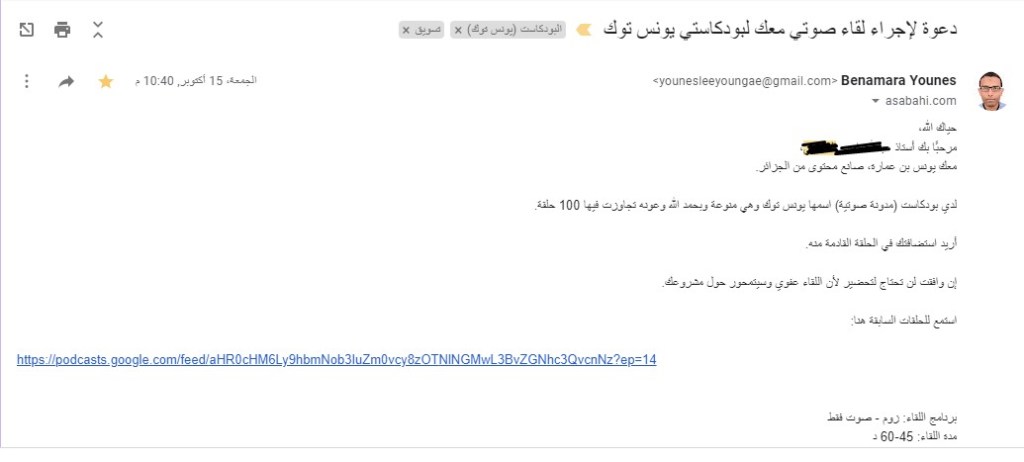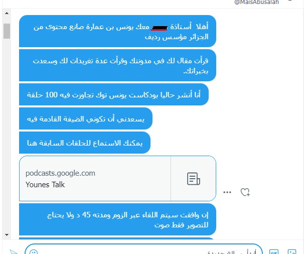 سيكون من الجميل أن تشارك معنا كيف تخرج حلقات يونس توك للنور بالصورة البهية التي نتلقاها. (ثريد تويتر، أو مباشر، أو فيديو مسجل).