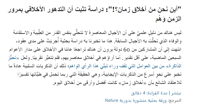 تحديث بتاريخ 13 يونيو 2023: طالع “أين نحن من أخلاق زمان؟!”: دراسة تثبت أن التدهور الأخلاقي بمرور الزمن وَهْم.