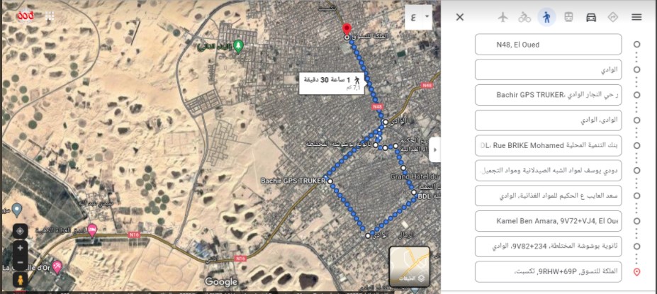أبشر. إليك بالتفصيل المسار التي أتبعه يوميًا. في خريطة غوغل:
