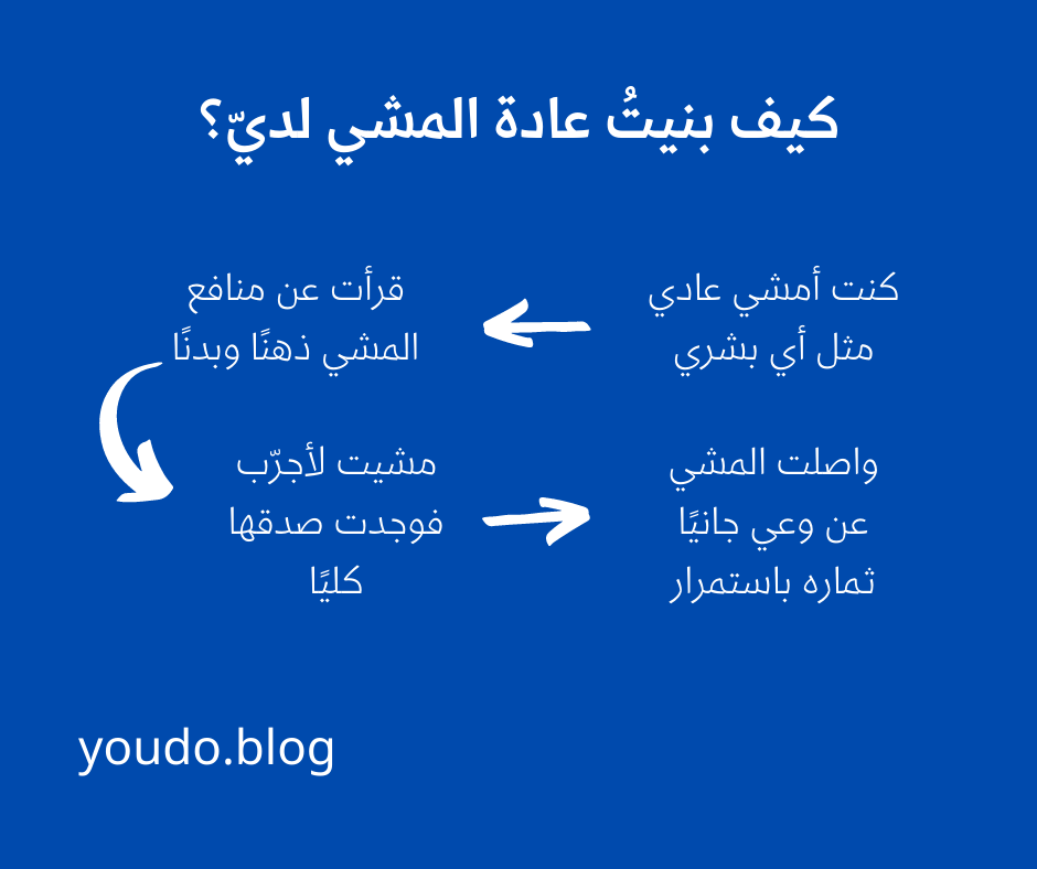 - هكذا بُنيت عادة المشي لدي والصورة أدناه توضّح ذلك بإيجاز: