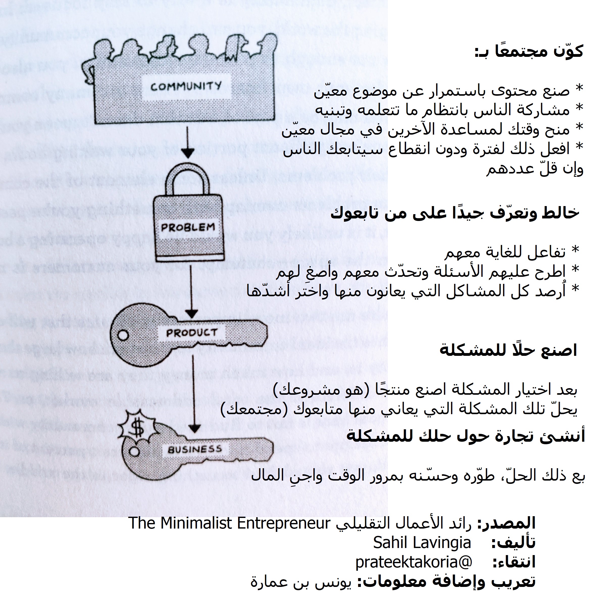 - اصنع منتجًا يحلّ تلك المشكلة (مجتمع، برنامج، أداة، دورة، كتيب…إلخ)