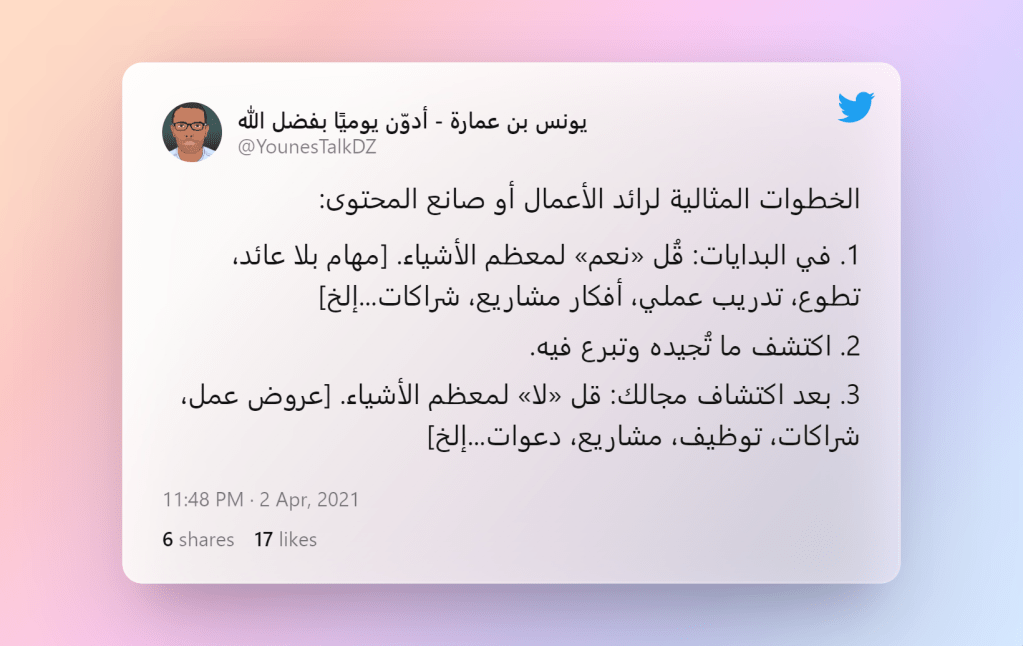 3. بعد اكتشاف مجالك: قل «لا» لمعظم الأشياء. [عروض عمل، شراكات، توظيف، مشاريع، دعوات…إلخ]