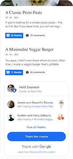 غوغل تطلق تحديثًا يشجع على إنشاء محتوى نافعٍ بحقٍّ وتجرّب إطلاق زر شكرًا لدعم صناع المحتوى ماليًا