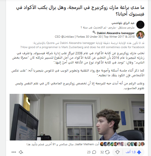 لهذا لا عجب أن مارك زوكربيرغ وأي مؤسس آخر تقلّ كتابته للأكواد (العمل الفني بحد ذاته) وتزداد إدارته للآخرين. تابع إجابة نافعة عن الموضوع تجدها في كورا: