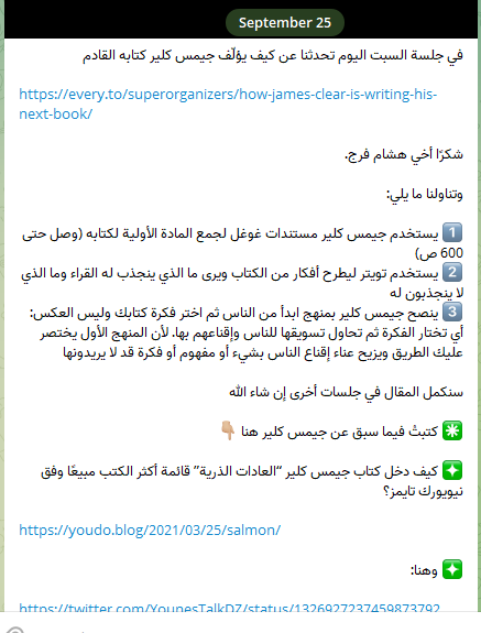 - بعد أن يكبر ما تجمعه من معلومات (جيمس كلير وصل عدد صفحات ملفه في مستندات غوغل إلى 600 صفحة): ابدأ الفرز والتشذيب.