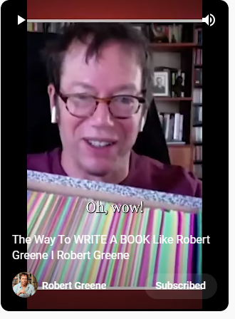 قرأ روبرت غرين 150 كتاب في مرحلة بحثه لتأليف أحد كتبه ثم بعد شهر يعود للكتب ويكتب عنها ملاحظات لما أثار اهتمامه وشدّ انتباهه ثم يكثّف (يقطّر) الحِكم المستخلصة من كل كتاب في 10 بطاقات ملحوظات ثم يُنظّم الملحوظات وفق فصول الكتاب الذي هو بصدد تأليفه ثم عندما يشرع روبرت في تأليف الكتاب يأخذ كل 50 بطاقة ملحوظة ويخصصها لكل فصل من فصول الكتاب وهذه هي -يقول روبرت- كل المواد التي أحتاجها للتأليف.