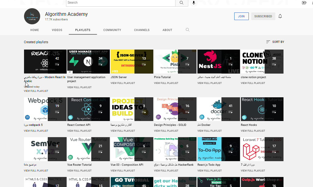 ومن هذه الجهود، جهد الأستاذ أسامة صاحب قناة Algorithm Academy والتي تُعرِّف بنفسها على أنها: