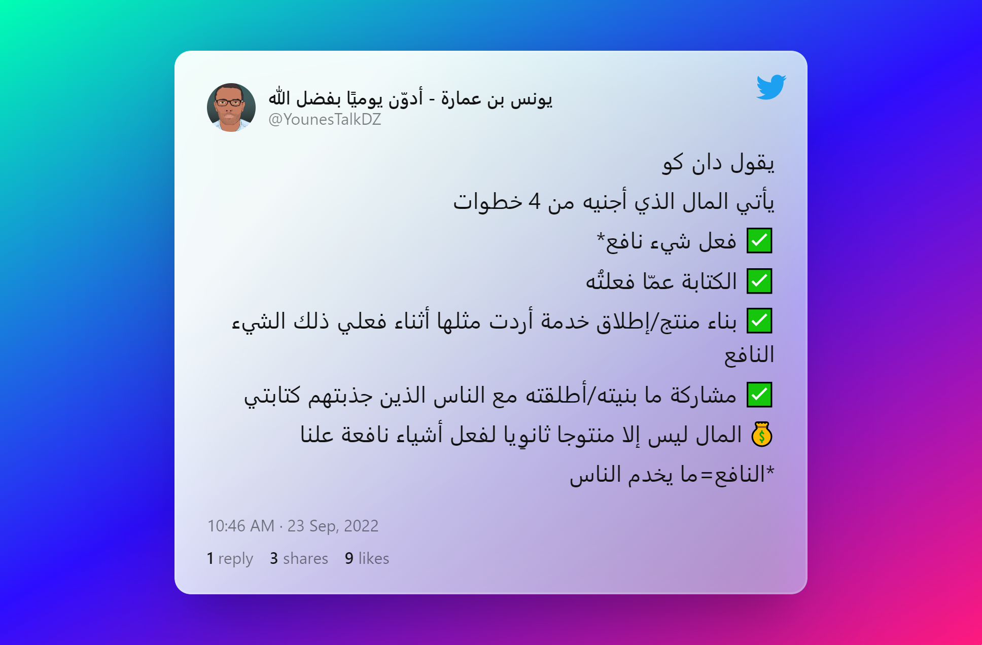 ونختم بهذه التغريدة الحكيمة من رائد أعمال المحتوى دان كو.