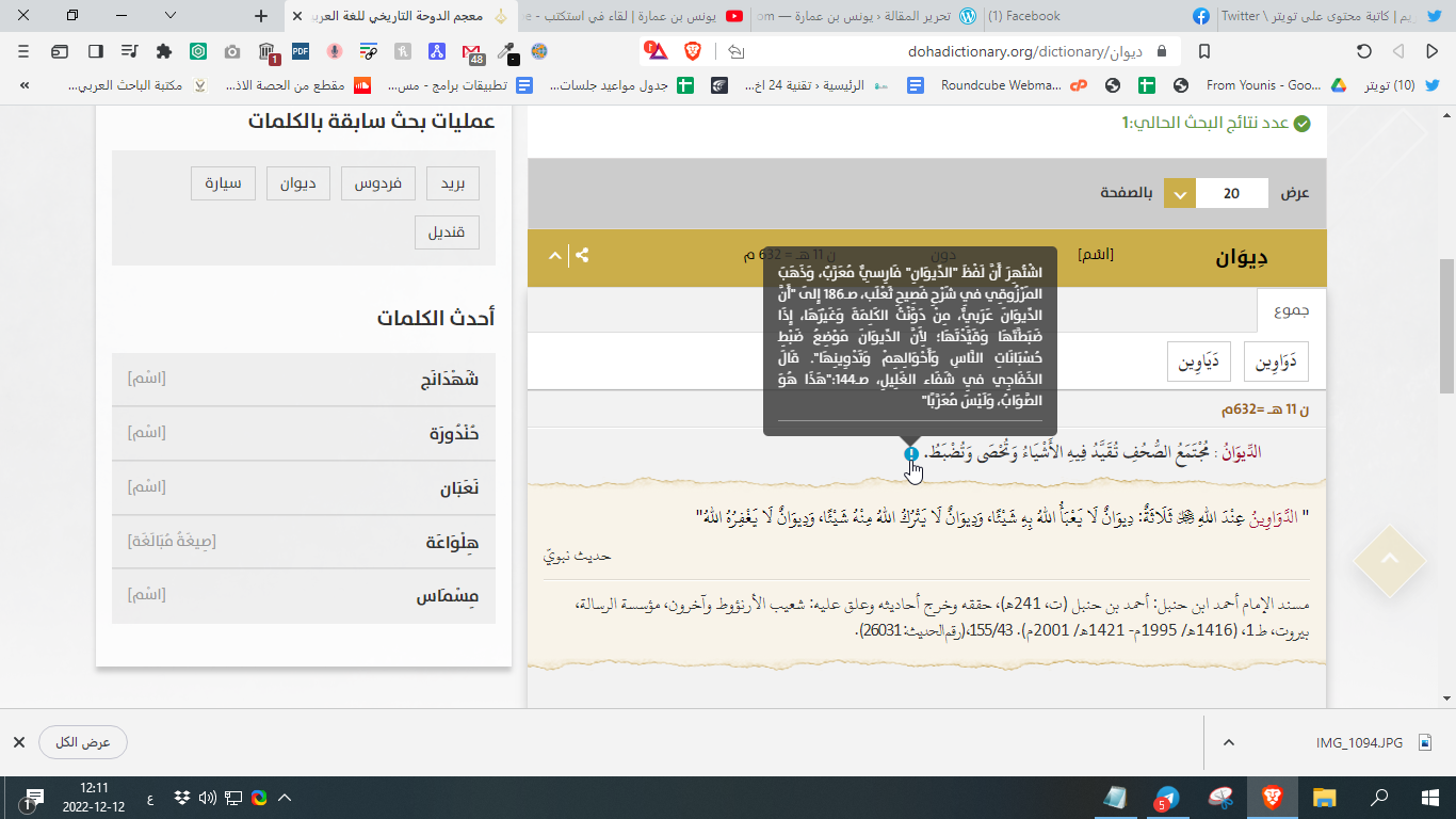 يُعرّف معجم الدوحة التاريخي للغة العربية كلمة الديوان على أنه