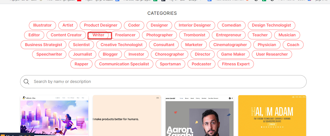 مصدر إضافي: موقع يضم أكثر من 150 مثالًا ممتازًا عن المواقع الشخصية في مختلف التخصصات والتي فيها الكثير من معارض الأعمال القيّمة: برسنل ويبسايتس.