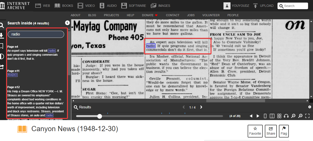 | الراديو | 1948م | 75 سنة | ذكر في الجريدة (اسمها في خانة المرجع👈) أن من توقع موته هو أحد “الخبراء” دون ذكر اسم له. | جريدة أخبار كانيون 30 ديسمبر 1948م (Canyon News) |