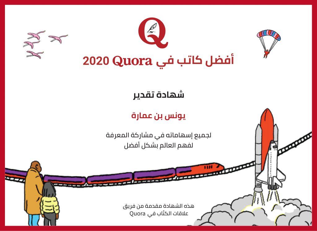 - أول عربي يُمنح لقب أفضل كاتب على منصة Quora شهر سبتمبر العام 2020.